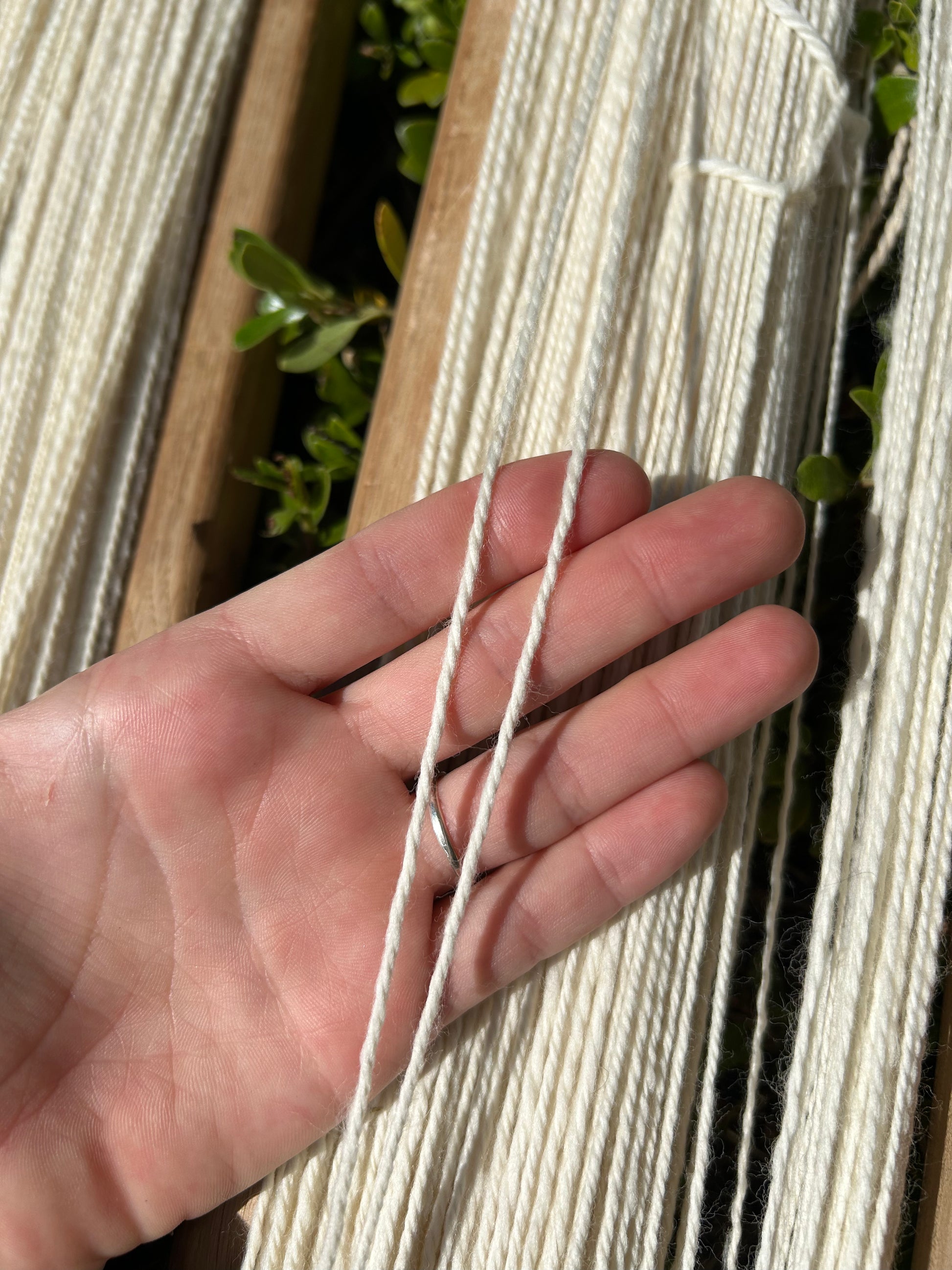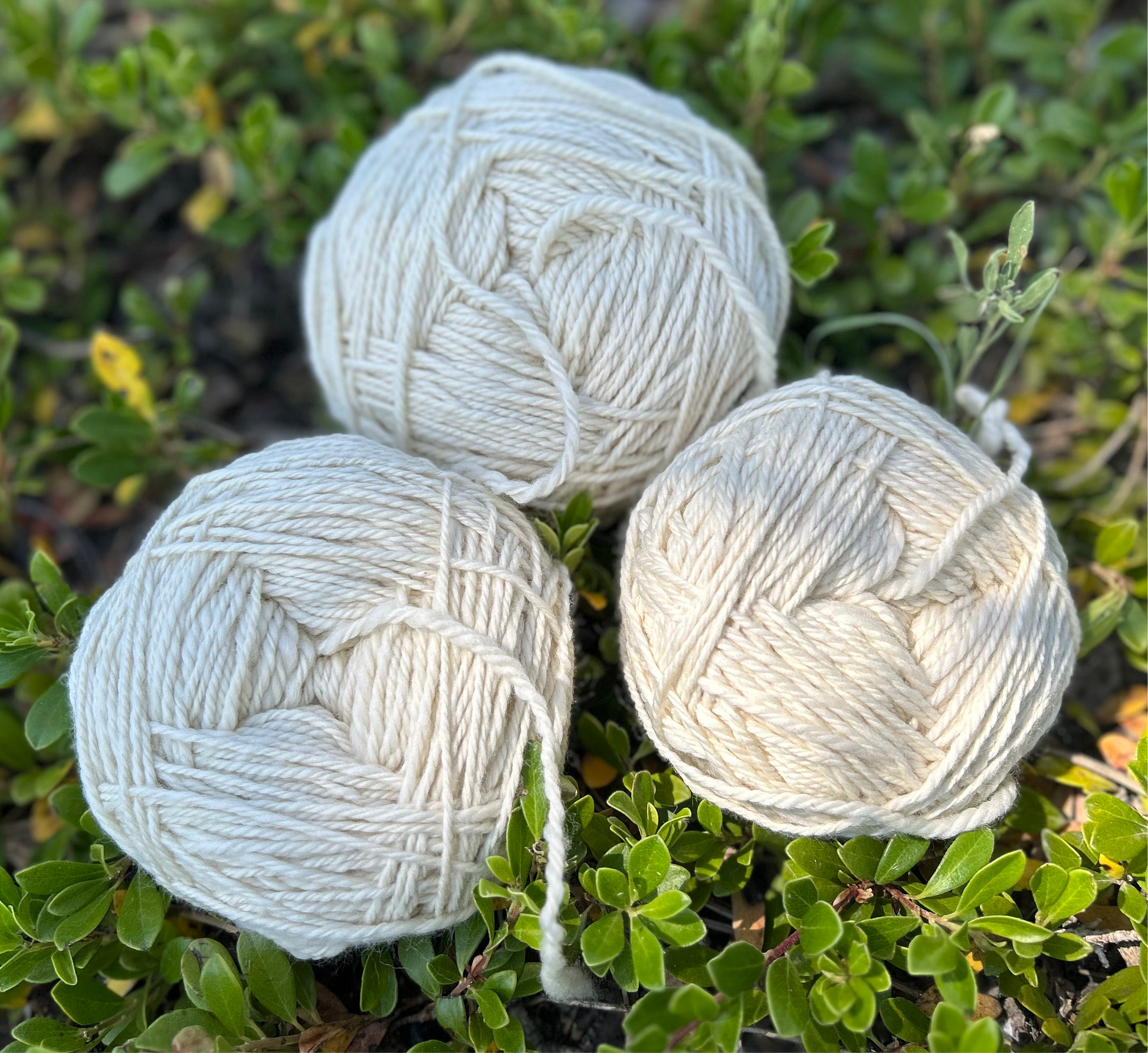 My favorite "white" yarn! This Rambouillet wool makes the softest, bounciest yarn. A lightweight 3 ply that works well for socks, hats, sweaters, and blankets, or whatever else you can dream up! This undyed yarn would also make a great canvas for your own color ideas if you dye your own yarn.