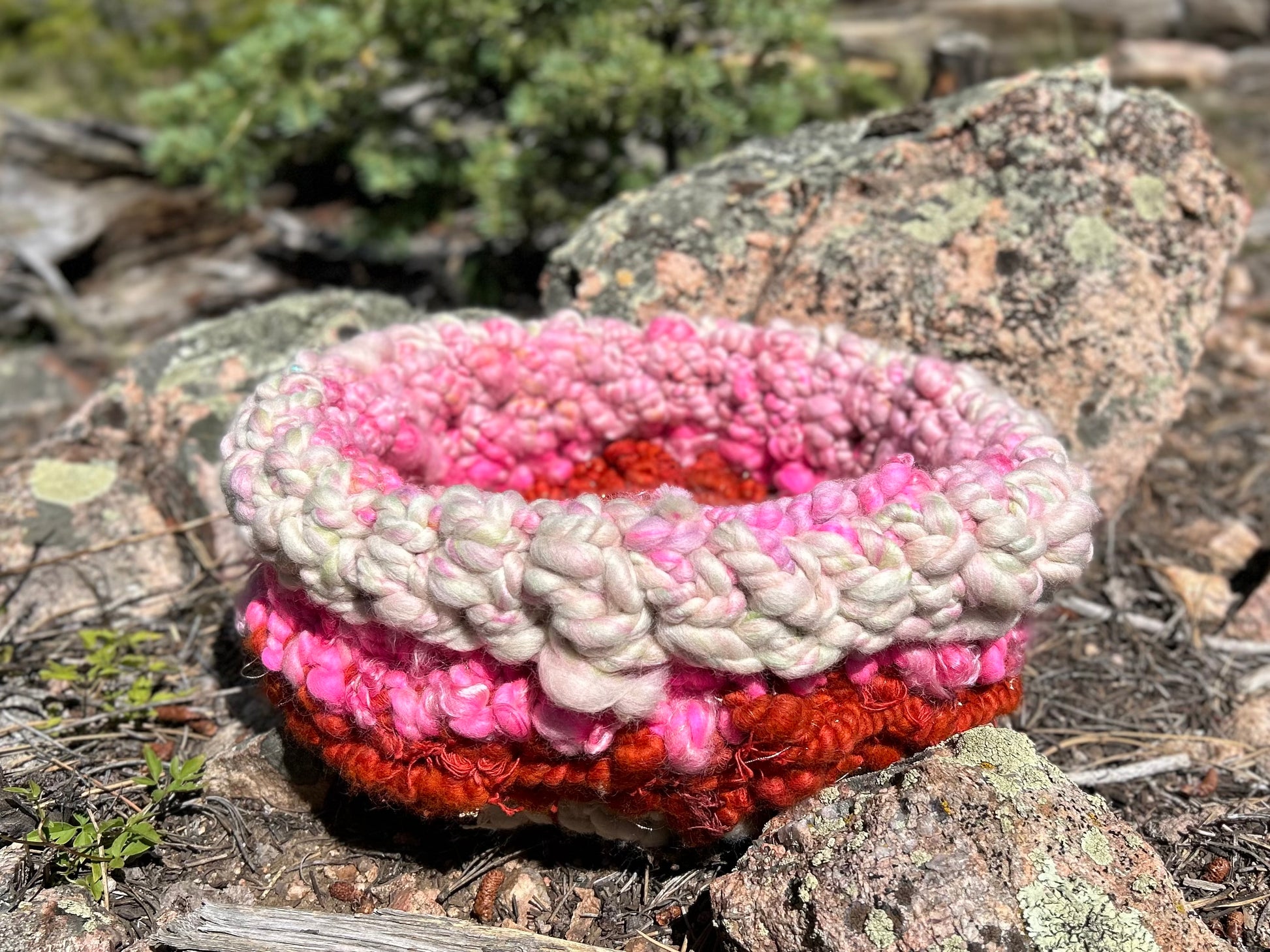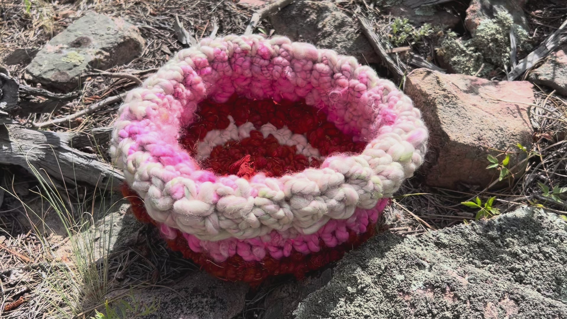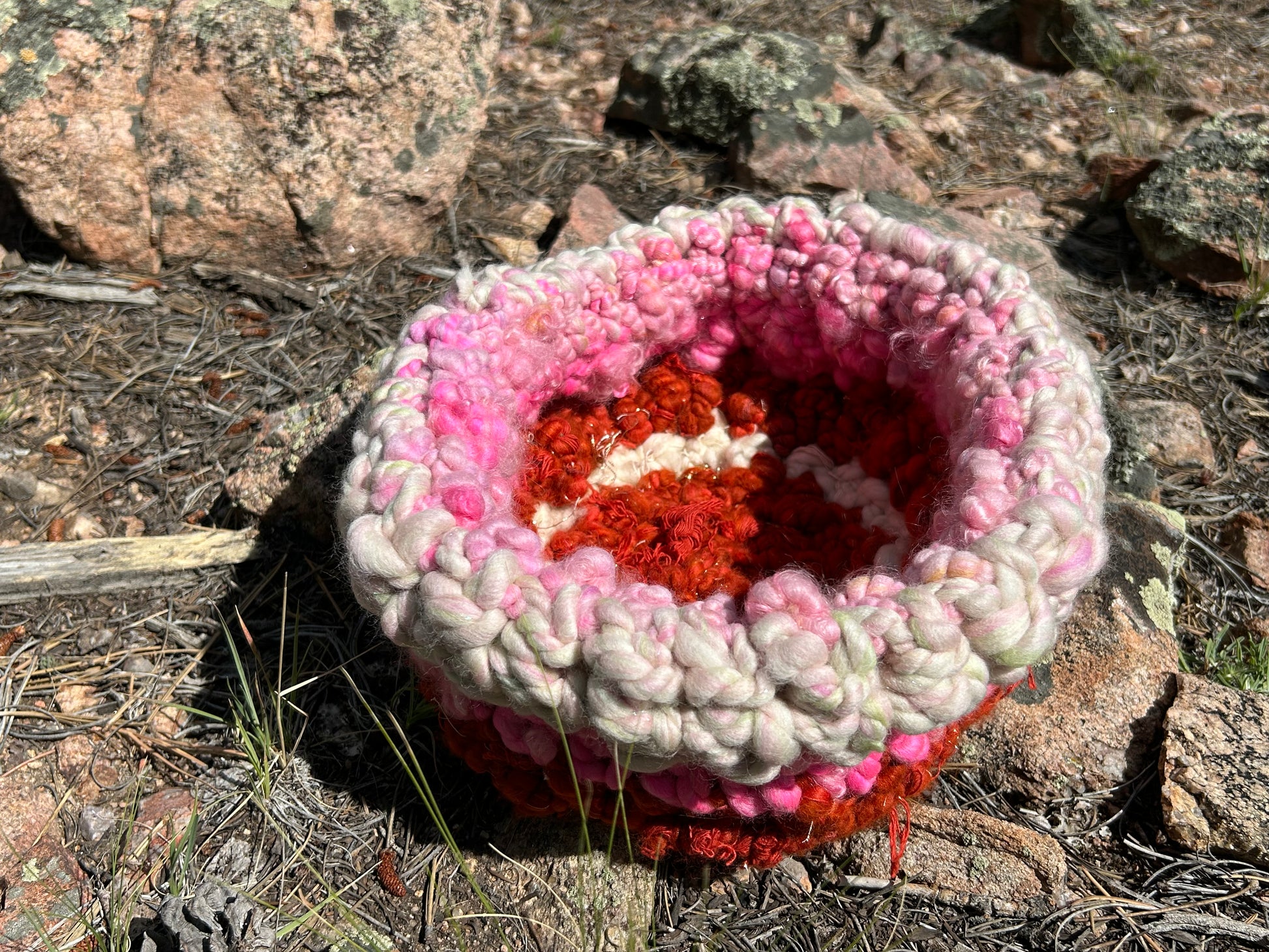 Pastel pinks and deep reds, with lots of shine and texture.